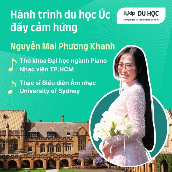 "Du học không chỉ là học mà còn là hành trình trưởng thành. Hãy chuẩn bị từ sớm và thật kỹ lưỡng, cơ hội luôn mở ra cho những ai thật sự sẵn sàng." - Nguyễn Mai Phương Khanh, Thạc sĩ Biểu diễn Âm nhạc, Nhạc viện Sydney.