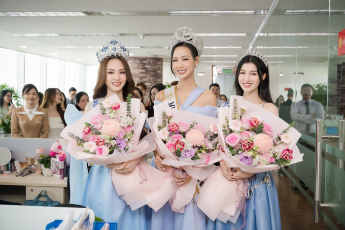 Top 3 Miss World Vietnam 2022 gặp gỡ nhà tài trợ cuộc thi.