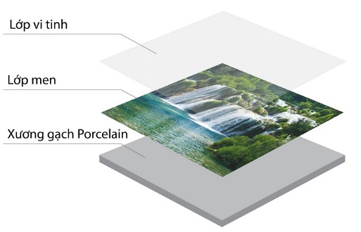 Gạch 3D vi tinh cao cấp là loại gạch trang trí cao cấp được làm chủ yếu từ đá xay nhuyễn, là lớp siêu cứng, siêu bền và khả năng chịu lực cực tốt. Dòng gạch này có cấu tạo gồm ba lớp: lớp xương gạch, lớp hình ảnh, lớp phủ vi tinh, được nung ở nhiệt độ nhất định theo đúng tiêu chuẩn.