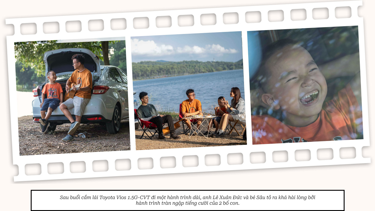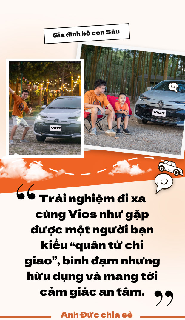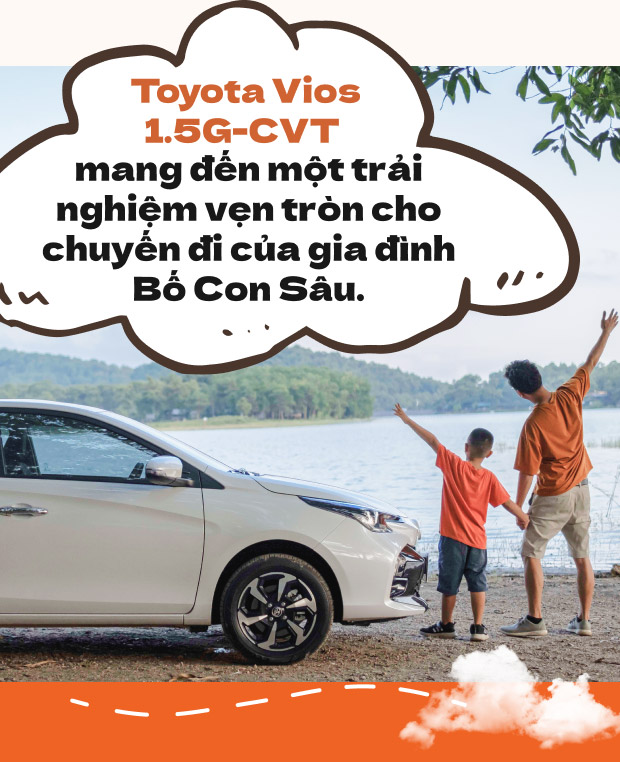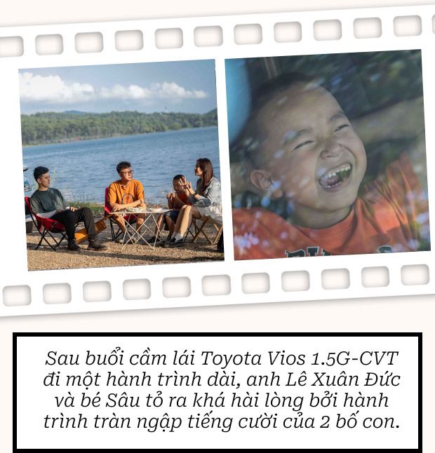 Vios sắm vai người bạn đồng hành đắc lực, giúp bố con anh có trải nghiệm cảnh sắc thiên nhiên tươi đẹp bằng một hành trình an toàn, dễ chịu và tiết kiệm. Anh Lê Xuân Đức cho biết Toyota Vios 1.5G-CVT sẽ là lựa chọn hàng đầu của anh trong lần đổi xe tới đây bởi chiếc xe sedan cỡ B này mang lại đúng những gì anh và gia đình cần.