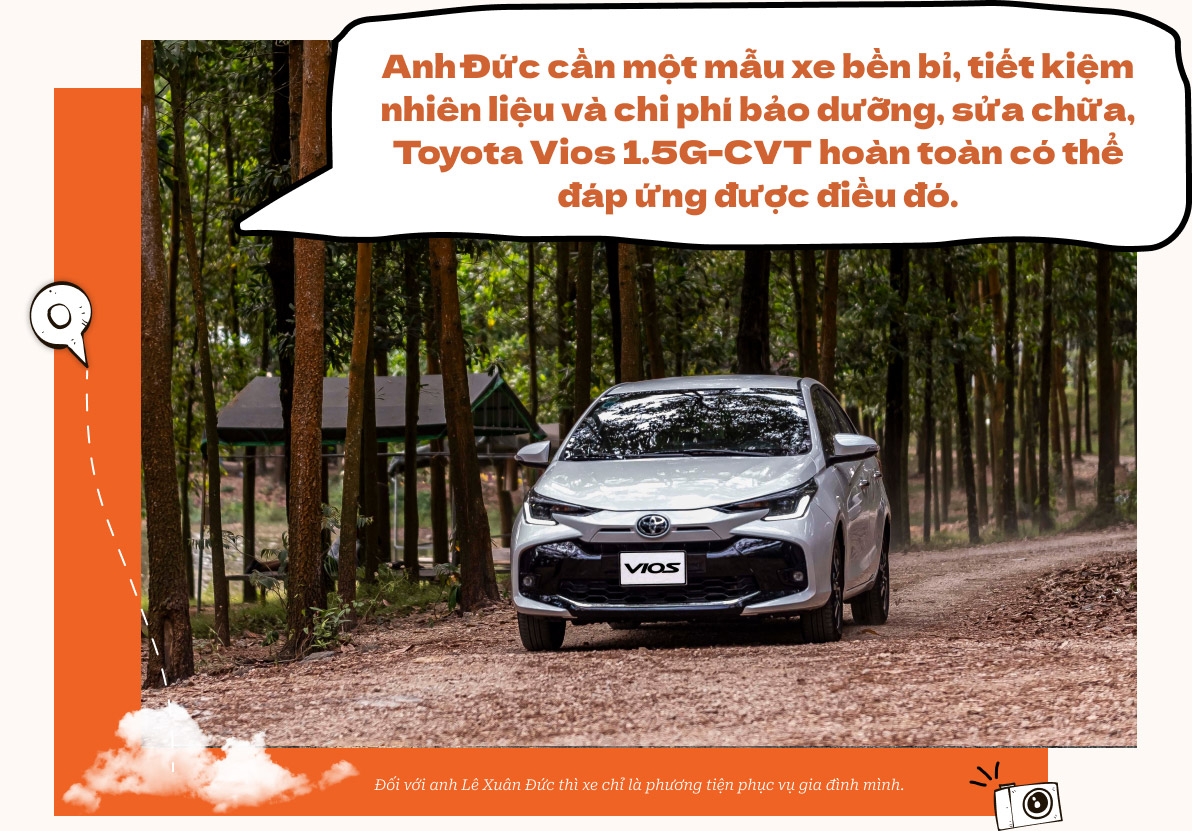 Đầu tiên, anh Lê Xuân Đức cần một mẫu xe bền bỉ, tiết kiệm nhiên liệu và chi phí bảo dưỡng, sửa chữa. Và Toyota Vios 1.5G-CVT hoàn toàn có thể đáp ứng được điều đó một cách dễ dàng. Với nhiều năm hiện diện ở Việt Nam, Toyota có hệ thống đại lý trải dài trên cả nước rất tiện lợi nên Bố con Sâu có thể đi khắp nẻo đường Việt Nam với chiếc Vios, mà không hề lo lắng sự cố dọc đường. Xét về tiêu thụ nhiên liệu, Vios chỉ tốn khoảng 6,5-6,7 lít/100km đường hỗn hợp thực tế khi anh lái xe trên cung đường Hà Nội – Quảng Ninh. Theo đánh giá của anh Lê Xuân Đức, Toyota Vios 1.5G-CVT tiết kiệm hơn khá nhiều nếu so với chiếc xe crossover mà anh đang sử dụng.