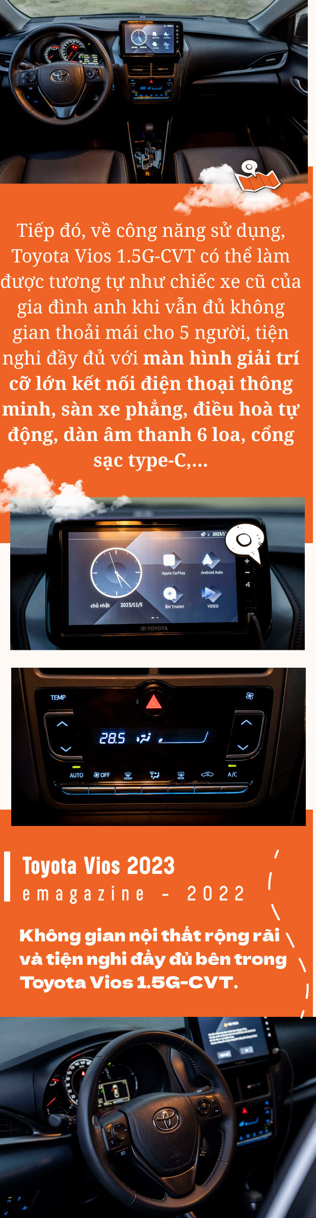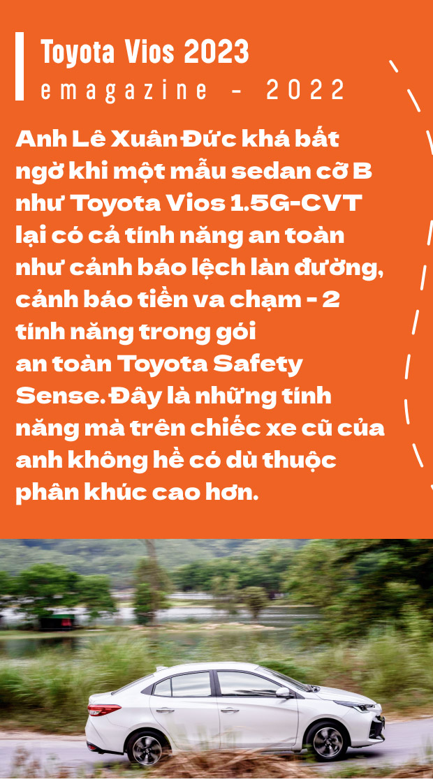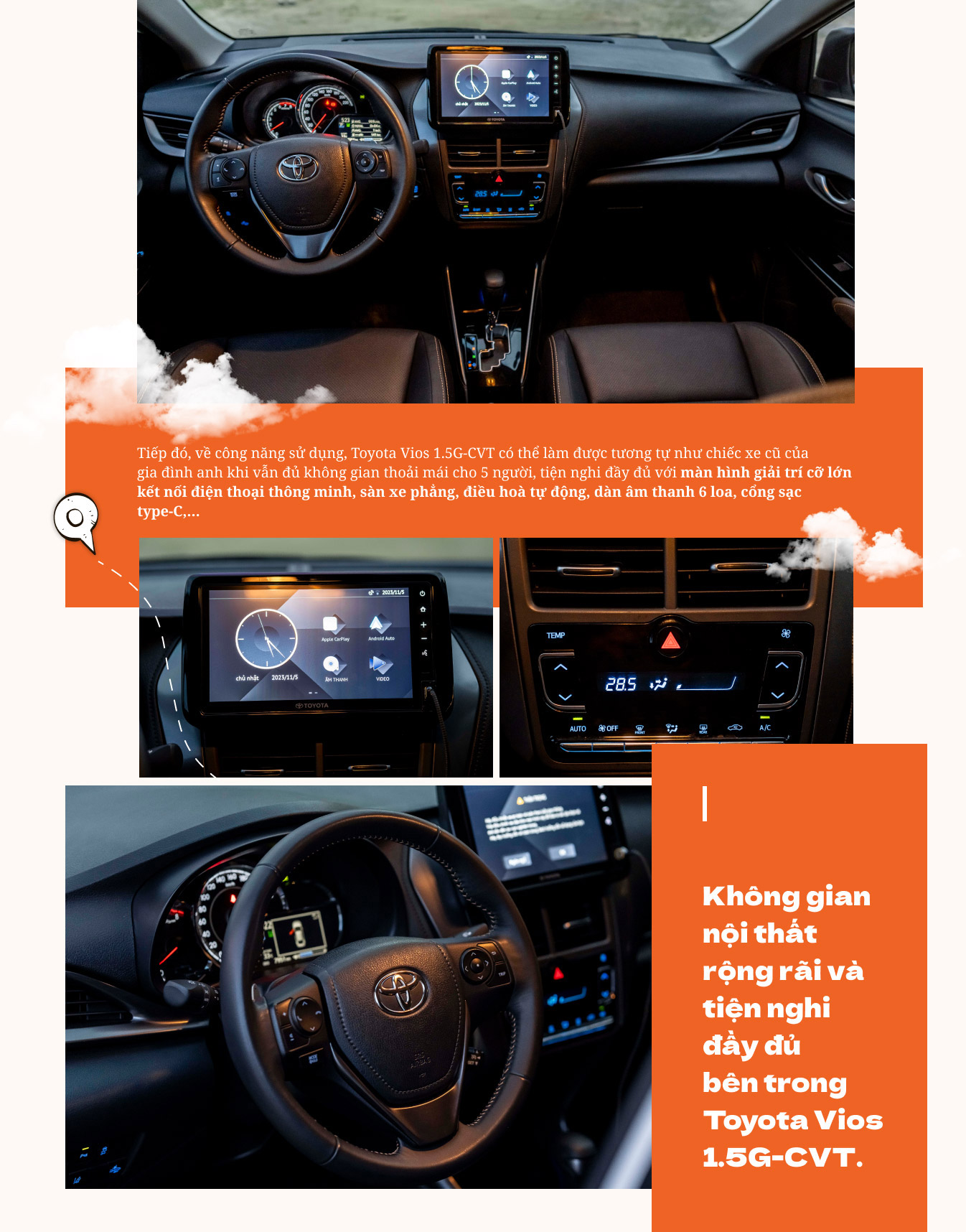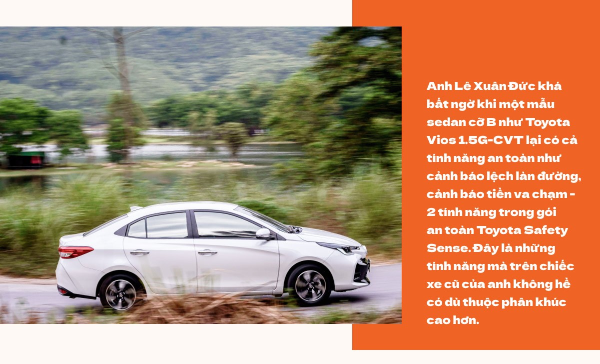 Chia sẻ cùng chúng tôi, anh Lê Xuân Đức cho biết mình không phải một chuyên gia về xe ô tô nên không cảm nhận rõ ràng lắm nhưng về cơ bản cảm giác lái không có gì khác biệt. Khác nhất có lẽ là do anh đang quen ngồi xe gầm cao thì nay ngồi thấp hơn một chút. Tuy nhiên điều này không làm ảnh hưởng quá nhiều đến trải nghiệm tổng quan của anh với Toyota Vios 1.5G-CVT.