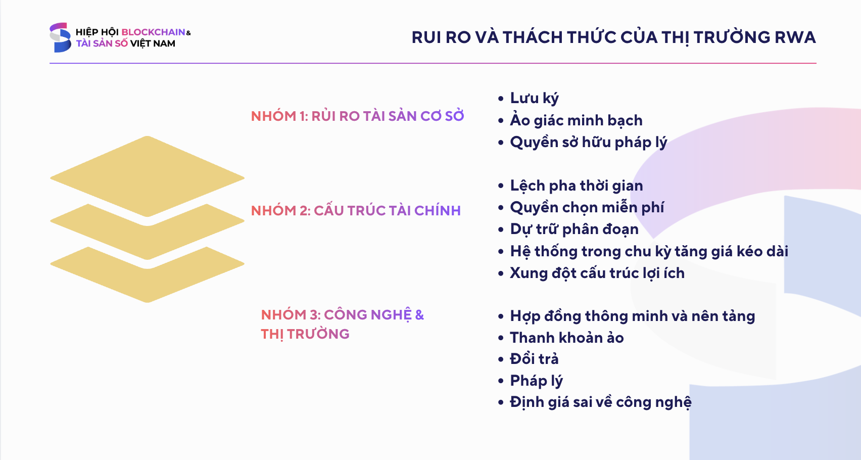 Ba nhóm rủi ro và thách thức của thị trường RWA. Nguồn: VBA