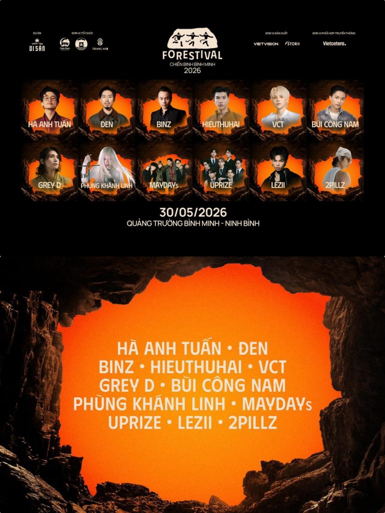 Lễ hội âm nhạc & sáng tạo “FORESTIVAL” 2026 - Chiến Binh Bình Minh sẽ diễn ra vào ngày 30/5/2026, tại Quảng trường Bình Minh - Ninh Bình. Lần đầu tiên, một không gian mới nằm giữa thiên nhiên tuyệt đẹp trong quần thể sinh thái chung Tràng An, Bái Đính được quy hoạch chuyên biệt cho FORESTIVAL 2026. Khu vực quảng trường sở hữu hạ tầng đồng bộ với sức chứa lên đến hàng chục nghìn khán giả, được bao bọc bởi tầm nhìn bao la giữa đất trời thiên nhiên Ninh Bình.