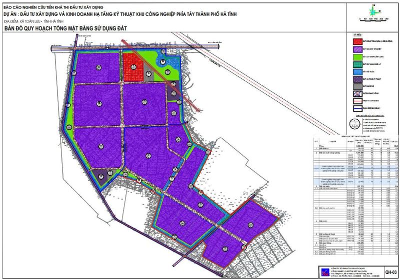 Bản đồ quy hoạch tổng mặt bằng sử dụng đất Dự án đầu tư xây dựng và kinh doanh kết cấu hạ tầng Khu công nghiệp Hưng Long Hà Tĩnh