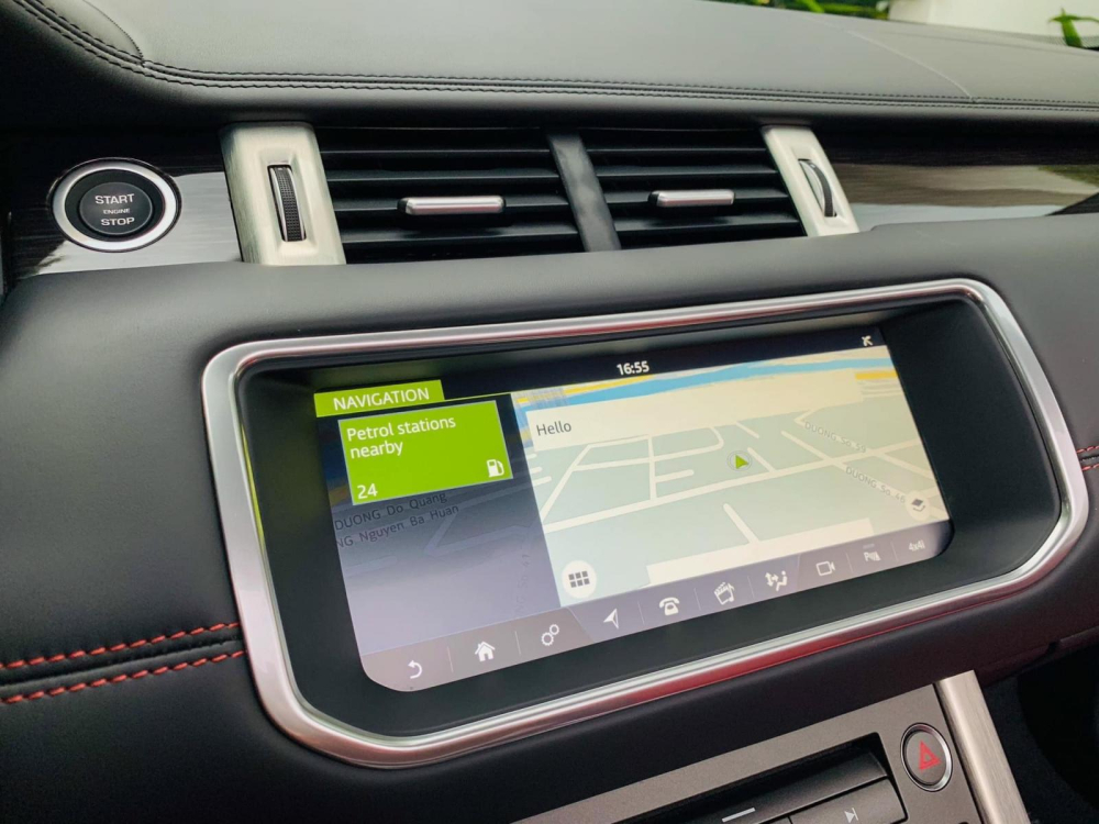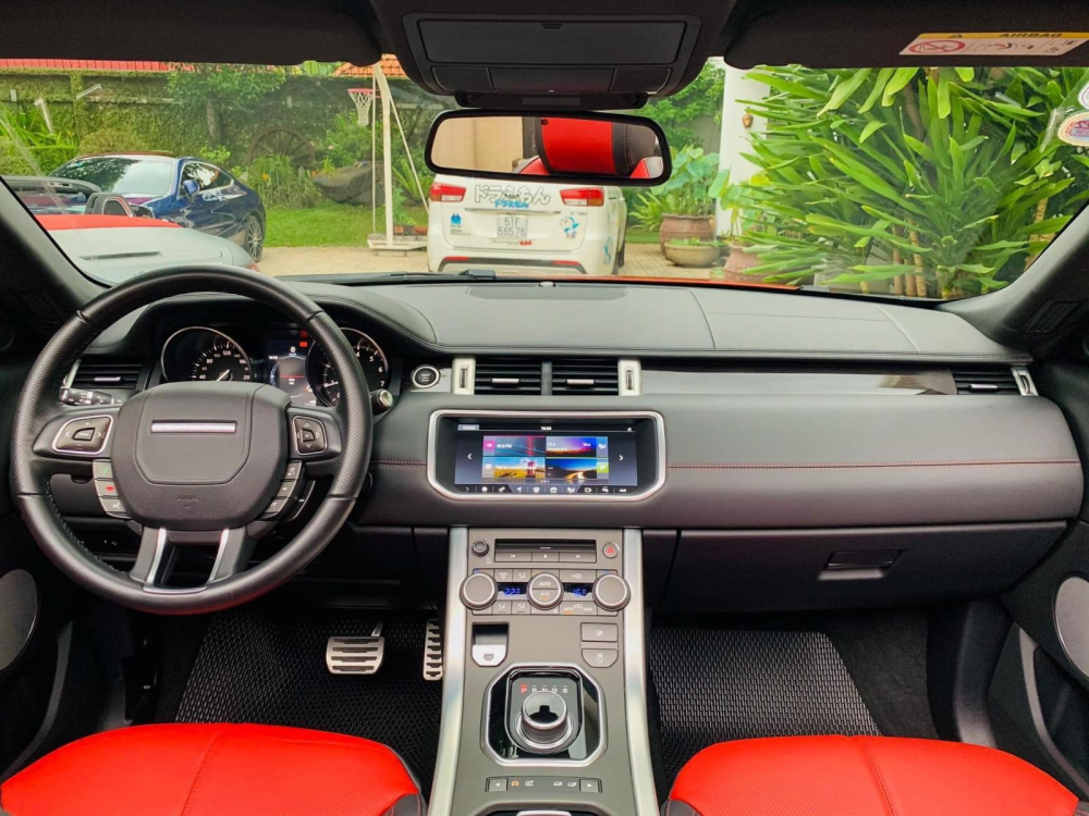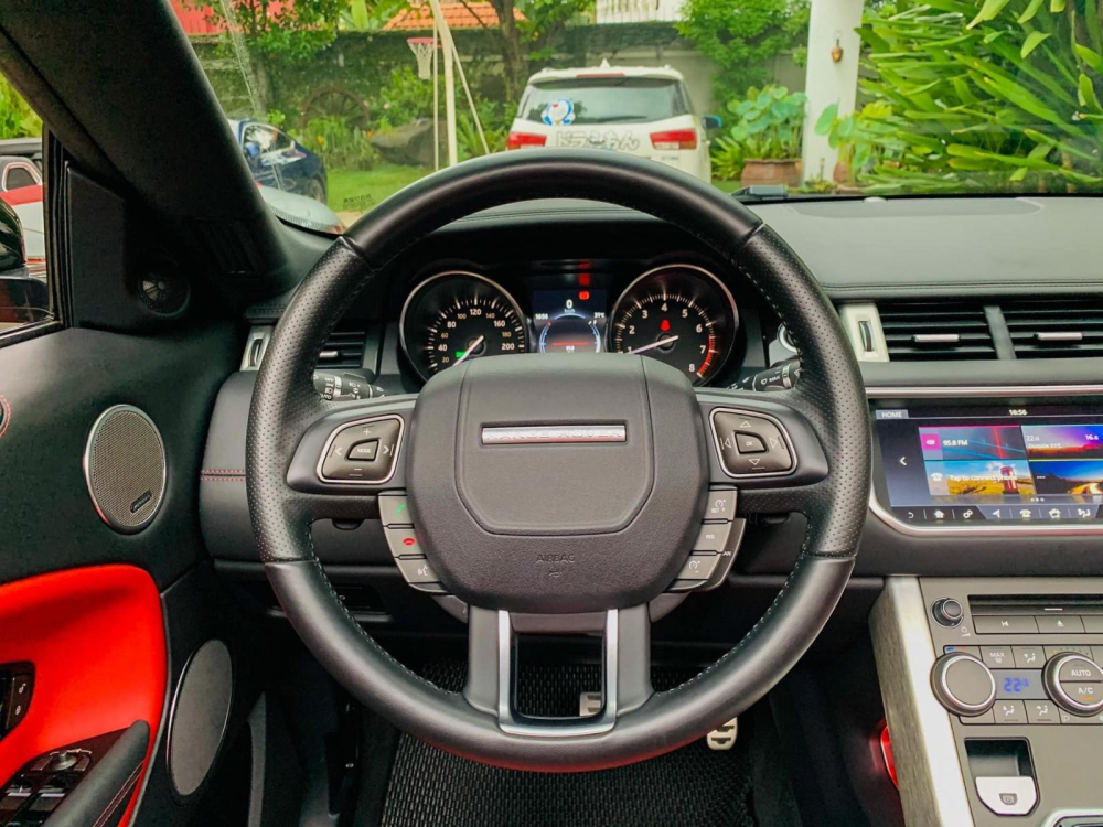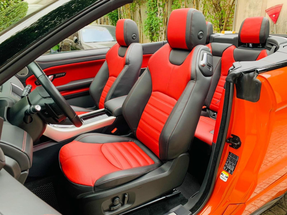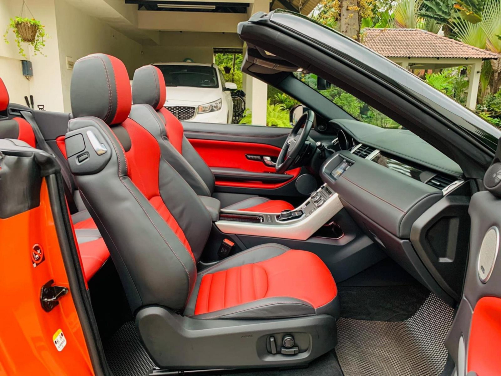 Khi chiếc mui mềm được hạ xuống, bên trong khoang lái xe Range Rover Evoque Convertible đang được rao bán là nội thất với 2 tông màu đỏ-cam và đen, ngoài ra, các chi tiết gần như được bê nguyên từ phiên bản tiêu chuẩn sang. Cụ thể, xe có hệ thống thông tin giải trí InControl Touch Pro với màn hình cảm ứng 8 inch tiêu chuẩn và 10,2 inch tùy chọn. Thêm vào đó là dàn âm thanh Meridian 380W, 10 loa tiêu chuẩn và 660 W, 12 loa tùy chọn.