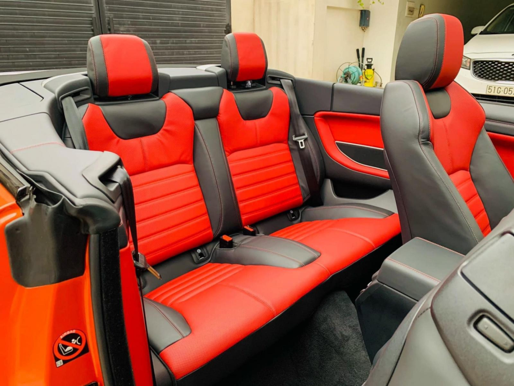 Lý lịch của chiếc SUV hạng sang cỡ nhỏ Range Rover Evoque Convertible này không quá xa lạ khi xe từng thuộc sở hữu của 1 người chơi xe đến từ tỉnh Đắk Lắk. Ngoại thất chiếc Range Rover Evoque mui trần đang rao bán được hoàn thiện màu đỏ cam với nhiều chi tiết sơn đen tạo điểm nhấn ở cản va trước, ốp vòm bánh xe, nẹp sườn, gương chiếu hậu, viền cửa kính và chắn gió hay khuếch tán sau.