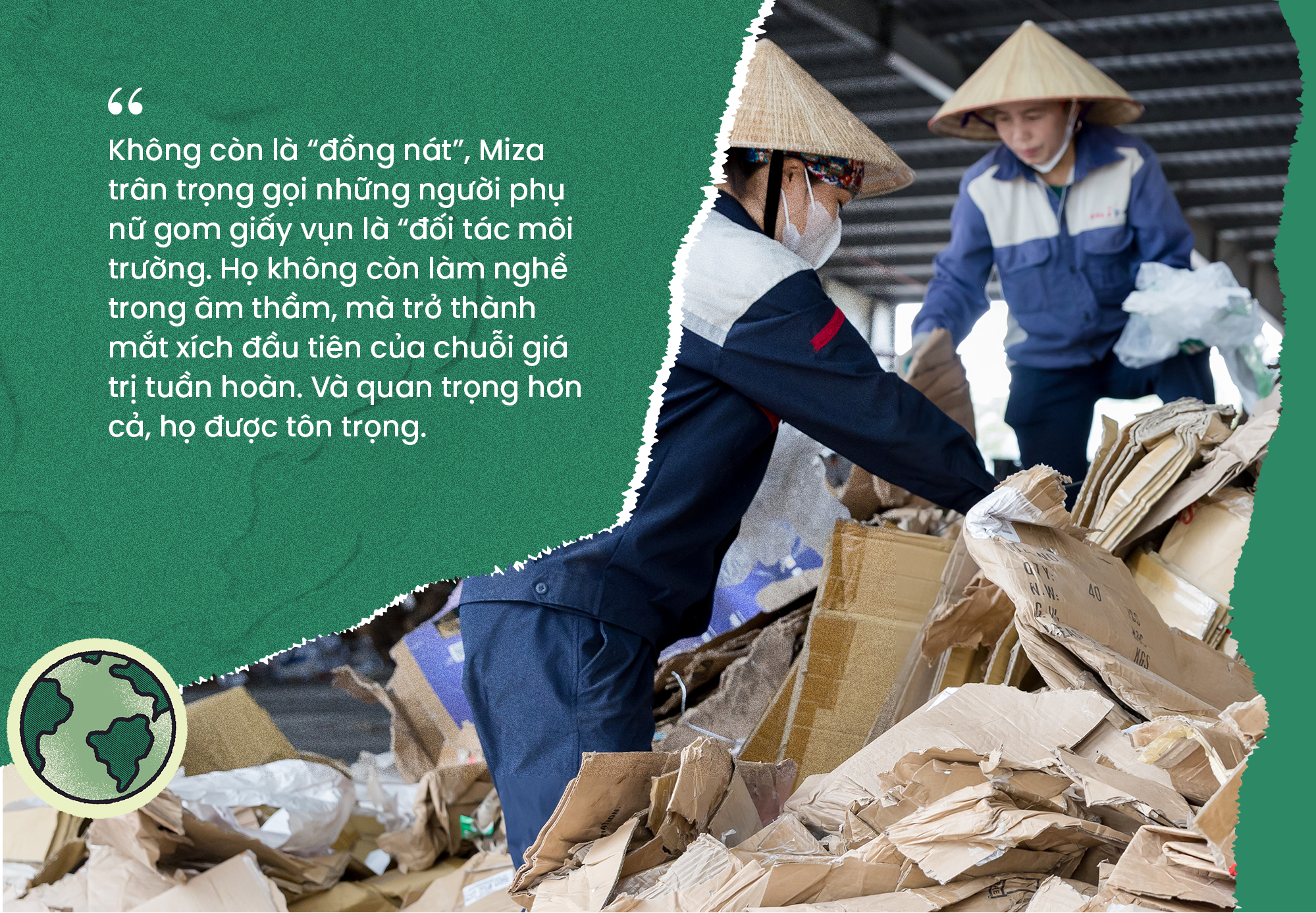 Cuộc sống của họ thay đổi khi Miza xây dựng các trạm thu gom như của chị Nhàn, tạo ra một mạng lưới có tổ chức. "Từ ngày có trạm, các chị em không còn phải lang thang nữa," chị giải thích. "Họ chỉ cần mang đến một chỗ. Ở đây, mọi thứ đều minh bạch: cân đo đàng hoàng, giá cả rõ ràng, trả tiền ngay. Chúng tôi còn hướng dẫn họ cách phân loại giấy sạch để bán được giá cao hơn, rồi hỗ trợ những thứ nhỏ nhặt nhưng thiết thực như bao tải, găng tay, nón lá."