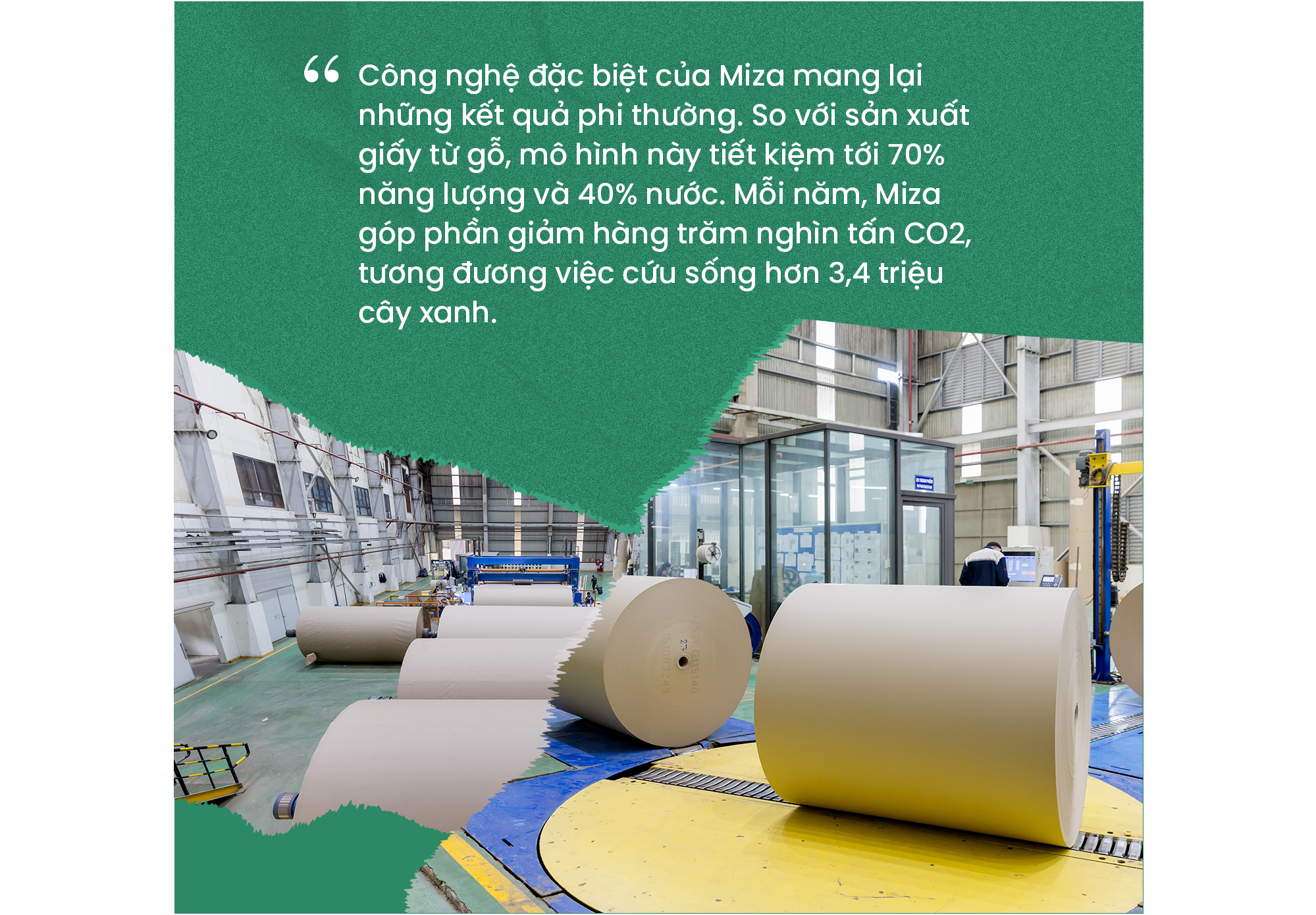 Nhìn vào Miza hôm nay, đó là một khu phức hợp nhà máy khổng lồ, những dây chuyền tự động hóa hiện đại, mỗi năm tái chế gần 200.000 tấn giấy, với sản phẩm xuất khẩu đến hơn 10 thị trường khó tính như Nhật Bản, Hàn Quốc, châu Âu. Nhưng đằng sau những con số, là một bản giao hưởng của sự tái sinh, nơi mỗi mắt xích, dù là con người hay công nghệ, đều đóng một vai trò không thể thiếu.