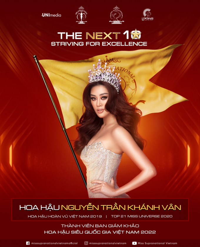 Chia sẻ về lý do nhận lời đồng hành cùng Hoa hậu Siêu Quốc gia Việt Nam 2022, Khánh Vân cho biết: Từng đại diện Việt Nam chinh chiến quốc tế, Vân hy vọng rằng những kinh nghiệm, chia sẻ của mình sẽ hỗ trợ và giúp ích cho các thí sinh trên hành trình chinh phục vương miện cao quý. Vân thấy được sự khát khao, nhiệt huyết của các cô gái trẻ mang tinh thần dân tộc, sự tự hào hô vang hai tiếng Việt Nam trên các đấu trường sắc đẹp quốc tế. Hơn bao giờ hết, Vân muốn tiếp thêm sức mạnh cho các bạn - những chiến binh tuyệt vời! Xin chúc các thí sinh Hoa hậu Siêu quốc gia Việt Nam 2022 hãy chuẩn bị sẵn sàng cho cuộc thi, hãy tự tin và mang đến cuộc thi một phiên bản hoàn hảo nhất của bản thân mình, để trở thành cô gái thứ 10 đại diện Việt Nam tại Miss Supranational”.