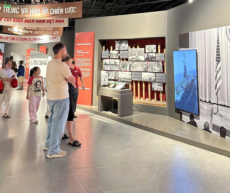 Khách du lịch quốc tế đến tham quan Bảo tàng Lịch sử quân sự Việt Nam dịp Tết Nguyên đán Bính Ngọ. Ảnh: VGP/Diệp Anh
