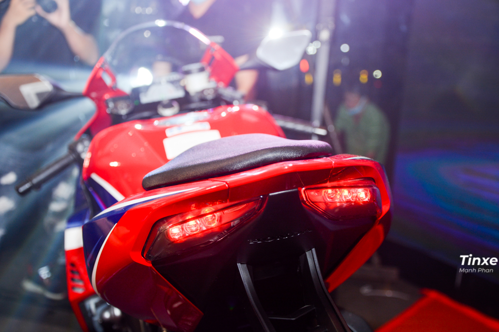 Đèn xi-nhan LED trên Honda CBR1000RR-R 2020 được tích hợp luôn trên gương chiếu hậu của xe, phía sau có đèn hậu LED đẹp mắt. Honda CBR1000RR-R phiên bản Fireblade và bản cao cấp Fireblade SP có một trang bị khác biệt.