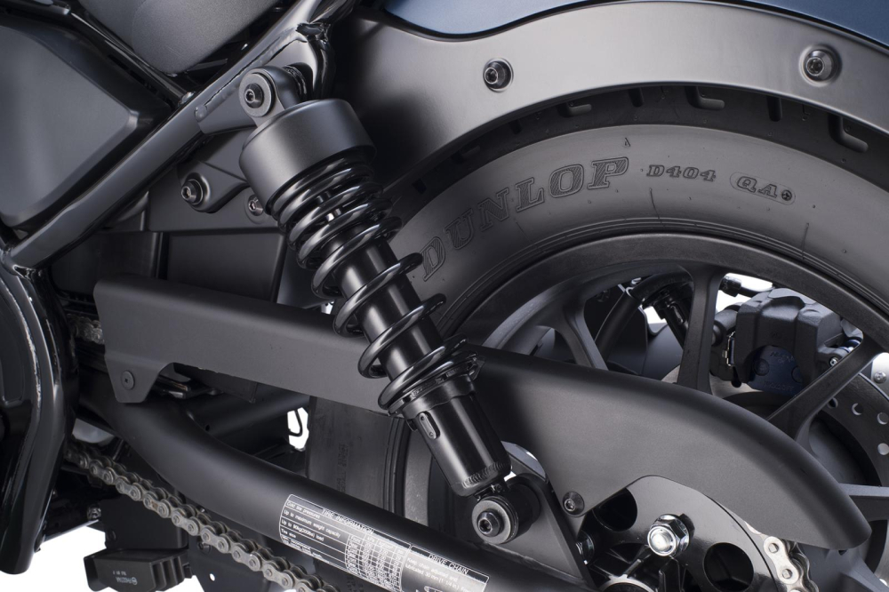 Bên cạnh nâng cấp ở hệ thống chiếu sáng và đồng hồ, Honda Rebel 500 cũng được nâng cấp giảm xóc sau dạng cao su giảm chấn, yên xe cũng mềm mại và êm ái hơn so với phiên bản cũ.