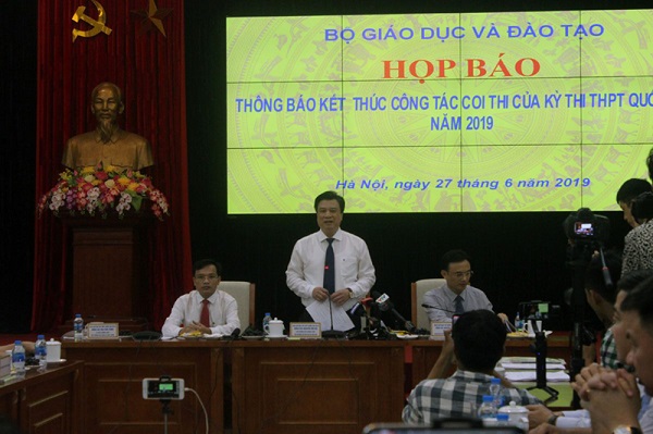 Tại cuộc họp báo, Bộ GD-ĐT cũng cho biết, kỳ thi THPT Quốc gia năm 2019, kỷ cương trường thi được tăng cường, kỷ luật phòng thi được duy trì nghiêm. Cho đến thời điểm này, chưa ghi nhận thấy hiện tượng tiêu cực, gian lận có tổ chức.