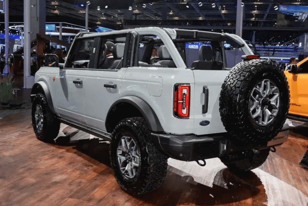 Các đường thẳng chiếm ưu thế ở hai bên hông xe. Phần mui bằng phẳng tương ứng với phong cách của một chiếc xe địa hình hạng nặng. Phần đuôi xe vuông vức, có cốp sau mở sang một bên và lốp dự phòng bên ngoài. Ford Bronco có thiết kế mui mềm.