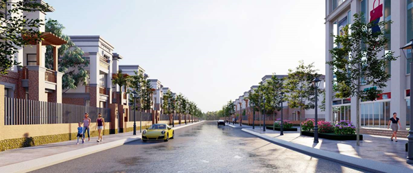Liền kề: bao gồm 23 block, diện tích từ 60 – 80 – 100 m2, xây dựng với chiều cao 4 tầng, mật độ xây dựng 80%.