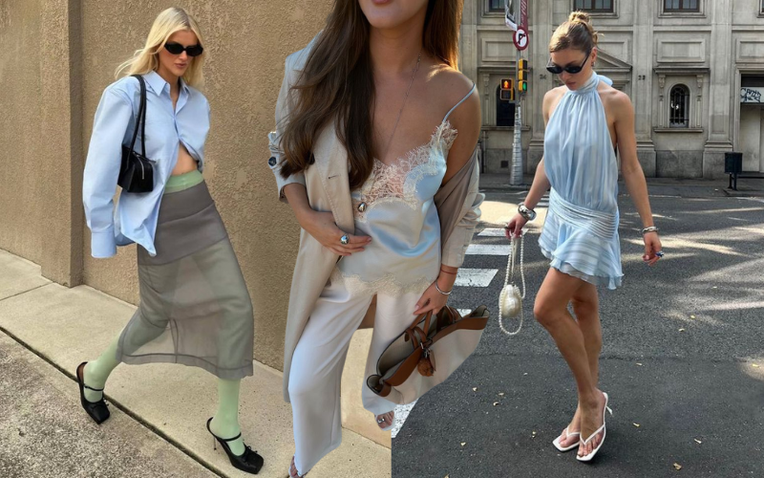 Không chỉ dừng lại ở sàn diễn, icy blue còn nhanh chóng lan tỏa vào street style và tủ đồ thường ngày. Từ những chiếc váy bay bổng, áo blouse nhẹ nhàng cho đến các món phụ kiện pastel, sắc xanh này xuất hiện với tần suất ngày càng dày đặc. Đặc biệt, khi thời tiết ấm lên, icy blue càng phát huy hết vẻ đẹp – nhẹ nhàng, mát mắt và cực kỳ "ăn ảnh".