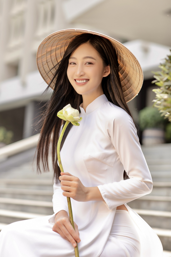 Chỉ sử dụng thêm một chiếc nón lá và những đoá hoa sen trắng, Juky San mong muốn thể hiện nét đẹp dịu dàng, nền nã và thanh thuần nhất của một người con gái Việt Nam. Không cần khoác lên những phụ kiện lấp lánh, cô gái Việt Nam vẫn nổi bật trong tà áo dài truyền thống vốn đã trở thành niềm tự hào bao đời nay của dân tộc.