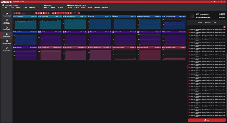 Người dùng này cho biết đã kiểm tra các yếu tố như dây cáp, nguồn điện và xác nhận không ép xung, cũng như đã cập nhật driver GPU lên phiên bản mới nhất. Tuy nhiên, các lỗi vẫn tiếp tục xảy ra, với báo cáo OCCT ghi nhận nhiều lỗi chỉ sau vài phút hoạt động, ngay cả khi nhiệt độ GPU chưa đạt mức nguy hiểm.