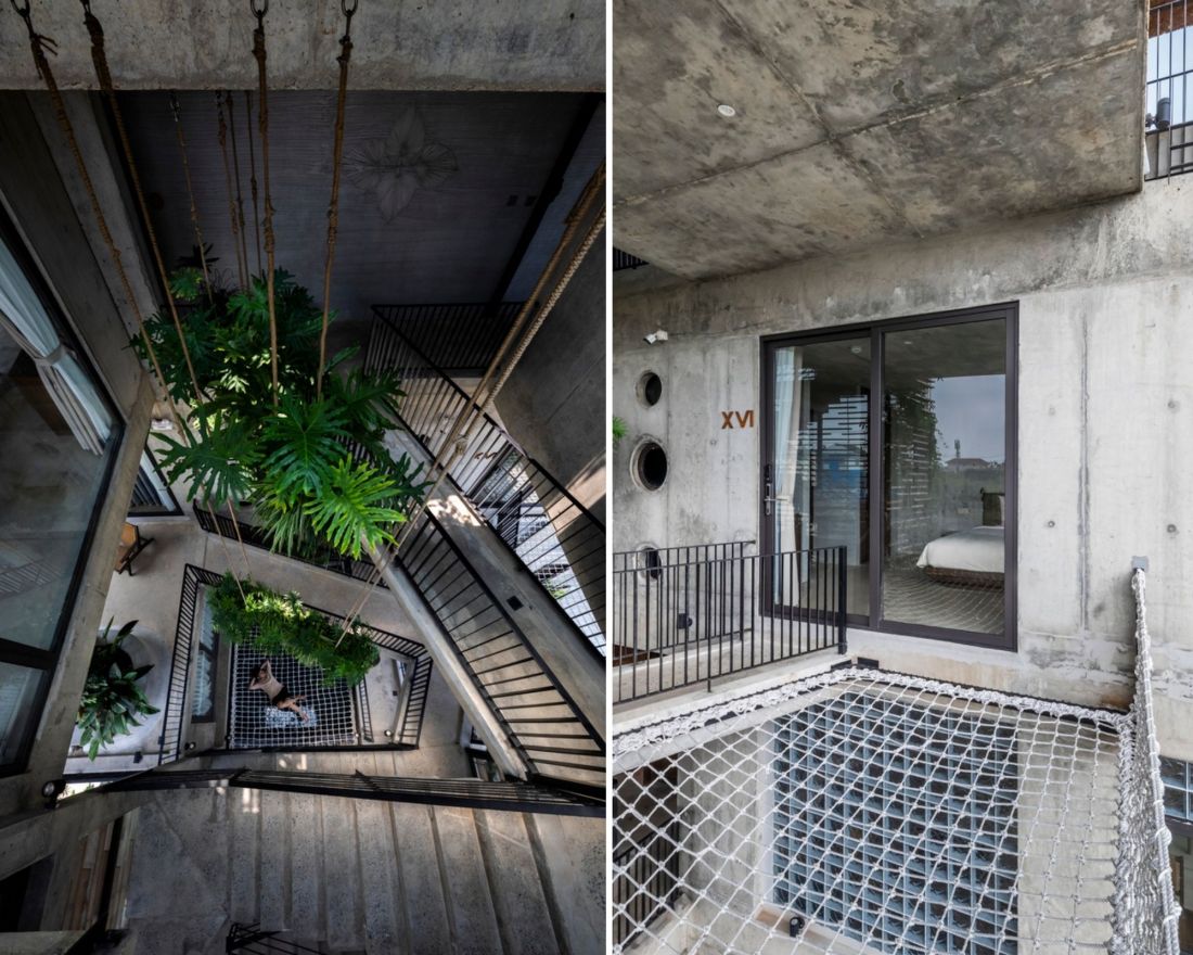 Hầu như các dự án khách sạn ngay tại khu vực đều hướng đến thiết kế tiết kiệm tối đa diện tích sàn có nhiều phòng lưu trú càng tốt nhằm tối ưu hiệu quả kinh doanh, nhưng với khách sạn này thì lại khác, các thiết kế hướng đến thân thiện, kết nối không gian chủ đạo.