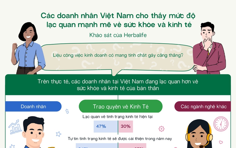Herbalife, với mục tiêu trở thành một công ty, cộng đồng và nền tảng hàng đầu về sức khỏe và thể chất, đã công bố các kết quả Khảo sát về trao quyền sức khỏe và kinh tế khu vực châu Á – Thái Bình Dương (APAC) năm 2025. Theo đó, khảo sát cho thấy mức độ lạc quan mạnh mẽ về kinh tế trong cộng đồng doanh nhân tại Việt Nam, với đến 94% kỳ vọng tình trạng kinh tế của họ sẽ được cải thiện trong 12 tháng tới, đồng thời 87% những người không phải là doanh nhân tham gia khảo sát cũng chia sẻ cùng quan điểm.