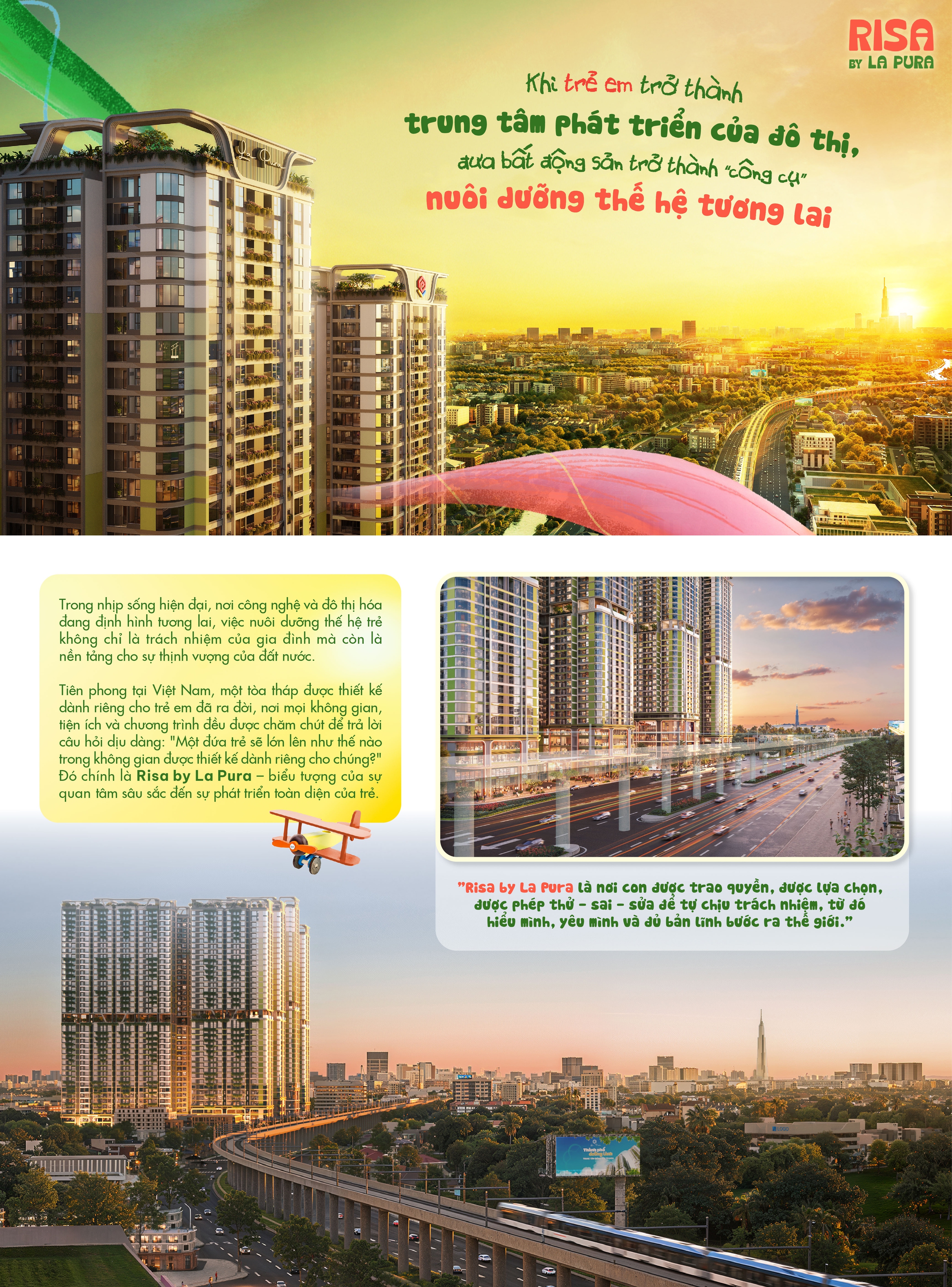 "Đây cũng chính là lý do để chúng tôi chọn hướng đi khác biệt, mang làn gió mới về thị trường bất động sản Việt Nam với thiết kế toà tháp dành riêng cho trẻ em mang tên Risa by La Pura cùng triết lý: Cho trẻ con - Do trẻ con. Risa by La Pura là nơi con được trao quyền, được lựa chọn, được phép thử - sai - sửa để tự chịu trách nhiệm, từ đó hiểu mình, yêu mình và đủ bản lĩnh bước ra thế giới", đại diện Nhà phát triển Phát Đạt chia sẻ.