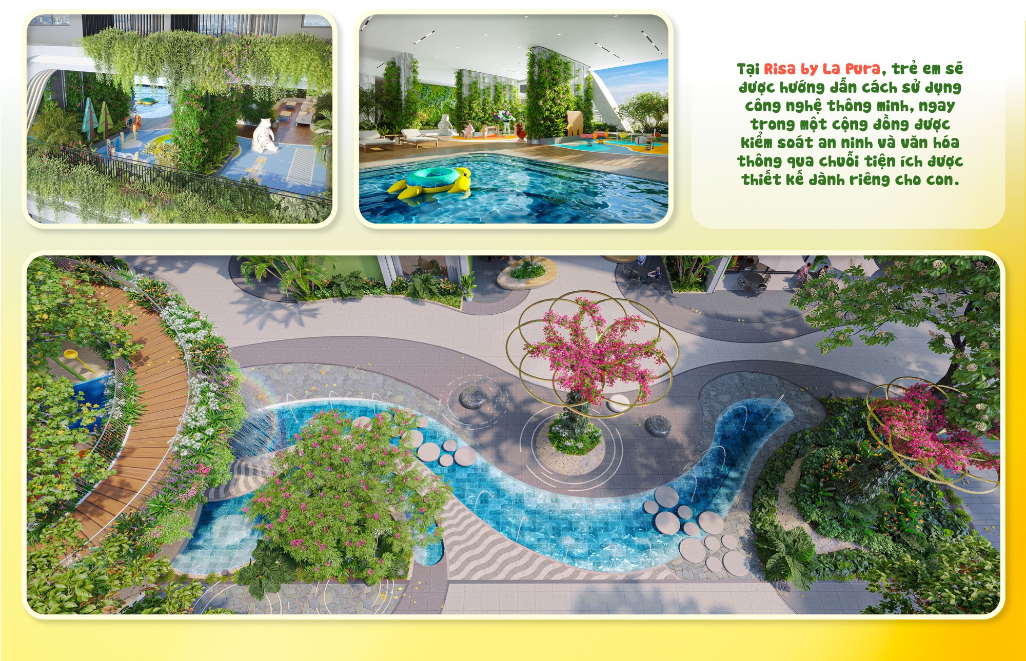 Đáng chú ý, tại Risa by La Pura, trẻ em sẽ được hướng dẫn cách sử dụng công nghệ thông minh, ngay trong một cộng đồng được kiểm soát an ninh và văn hóa thông qua chuỗi tiện ích được thiết kế dành riêng cho con như vườn thiên văn, rạp chiếu phim công nghệ hay một cộng đồng "digital play" có giám sát, mục tiêu kỹ năng dành riêng cho các con.