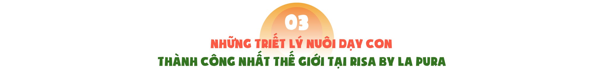 Chính vì vậy, một lộ trình nuôi dưỡng đặc biệt đã được kiến tạo riêng cho cộng đồng cư dân nhí tại Risa by La Pura. Lộ trình này không chỉ là sự sao chép, mà là sự kết tinh sáng tạo từ những phương pháp nuôi dạy con thành công nhất thế giới: từ tinh thần tự do khám phá và tôn trọng cá nhân trong Montessori, đến cách tiếp cận môi trường như "người thầy thứ ba" của Reggio Emilia (Ý); từ kỷ luật nhẹ nhàng, tự lập sớm trong triết lý nuôi con kiểu Nhật, đến sự khuyến khích sáng tạo, tự tin thể hiện bản thân trong phong cách Mỹ.