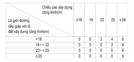 • Với công trình cao từ 28m trở lên thì phải chừa khoảng lùi tối thiểu 6m.