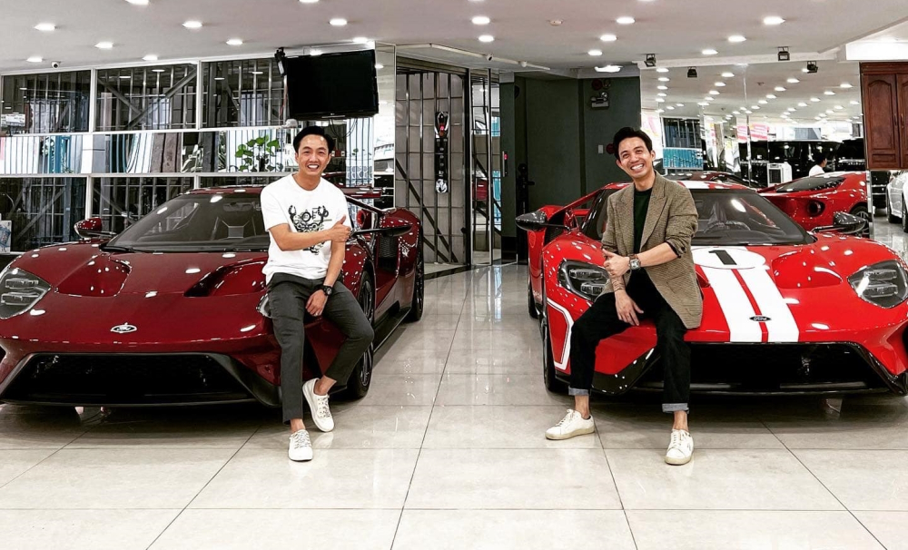 Minh "Nhựa" và Cường "Đô-la" chụp ảnh cùng cặp siêu xe Ford GT thế hệ mới