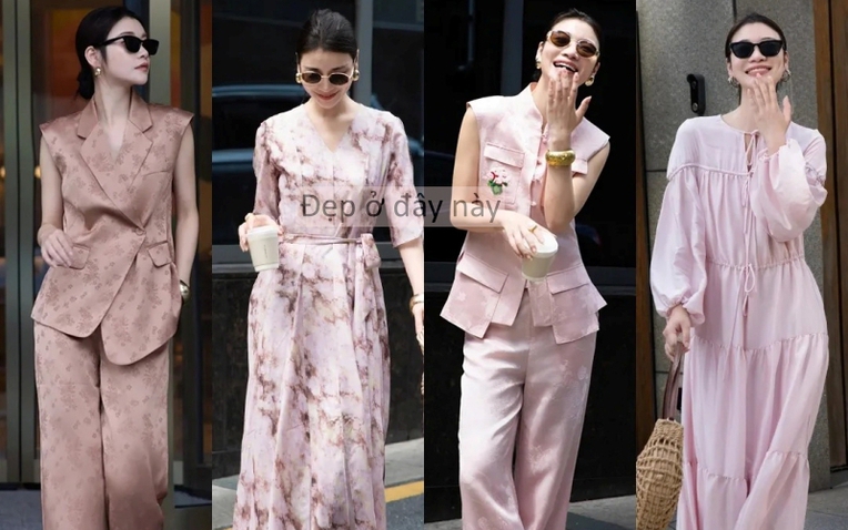 Điểm chung dễ nhận thấy là các set đồ đều không dùng tông hồng quá chói. Thay vào đó là những sắc hồng phấn, hồng nude hoặc hồng đất – những gam màu dịu mắt, có độ “trầm” nhất định.