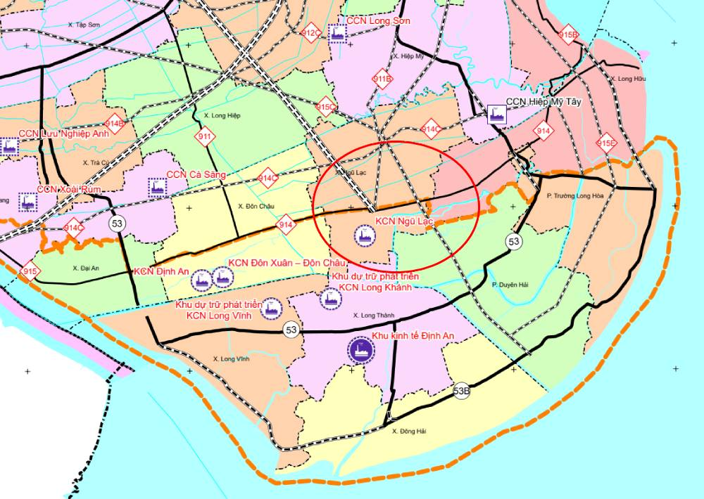 Ranh giới và kết nối liên vùng của KCN Ngũ Lạc Vĩnh Long