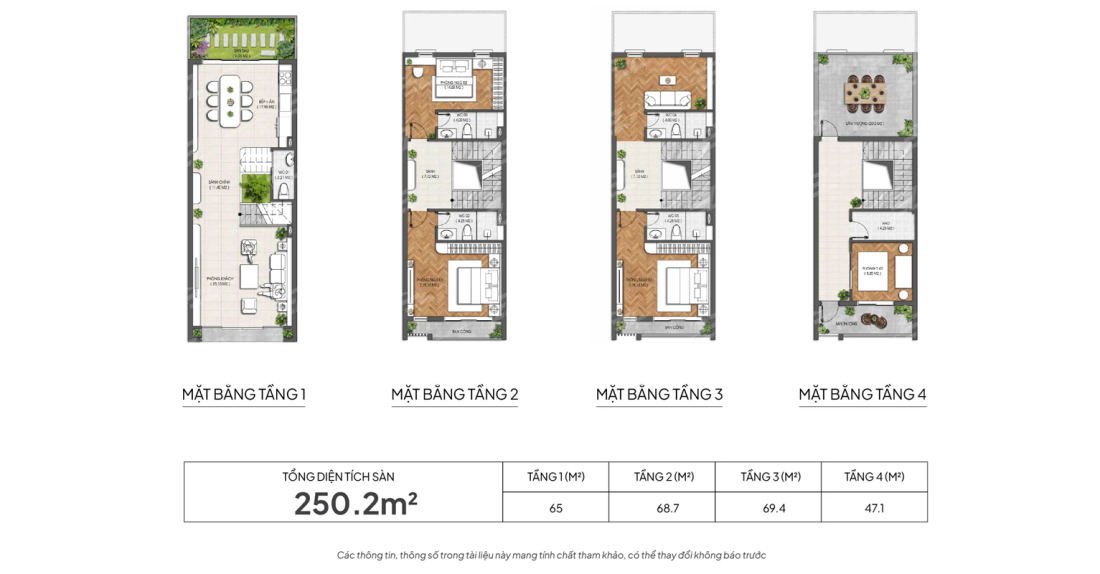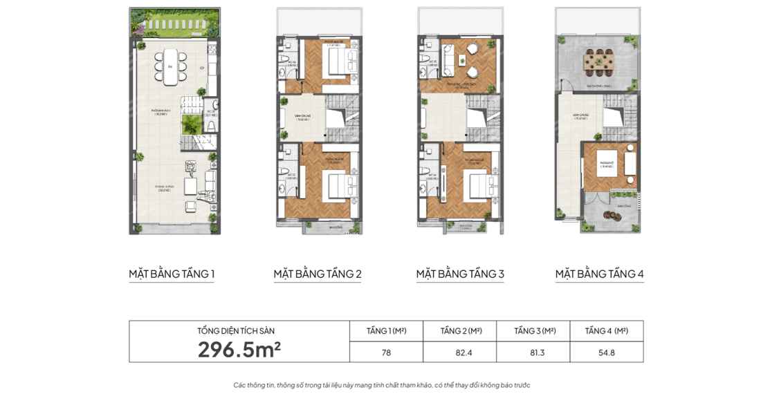 Tổng diện tích sàn: 250,2-296,5m2