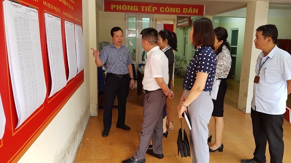 Đoàn giám sát việc lập, niêm yết danh sách cử tri tại Hà Nội. Ảnh: VGP/Gia Huy