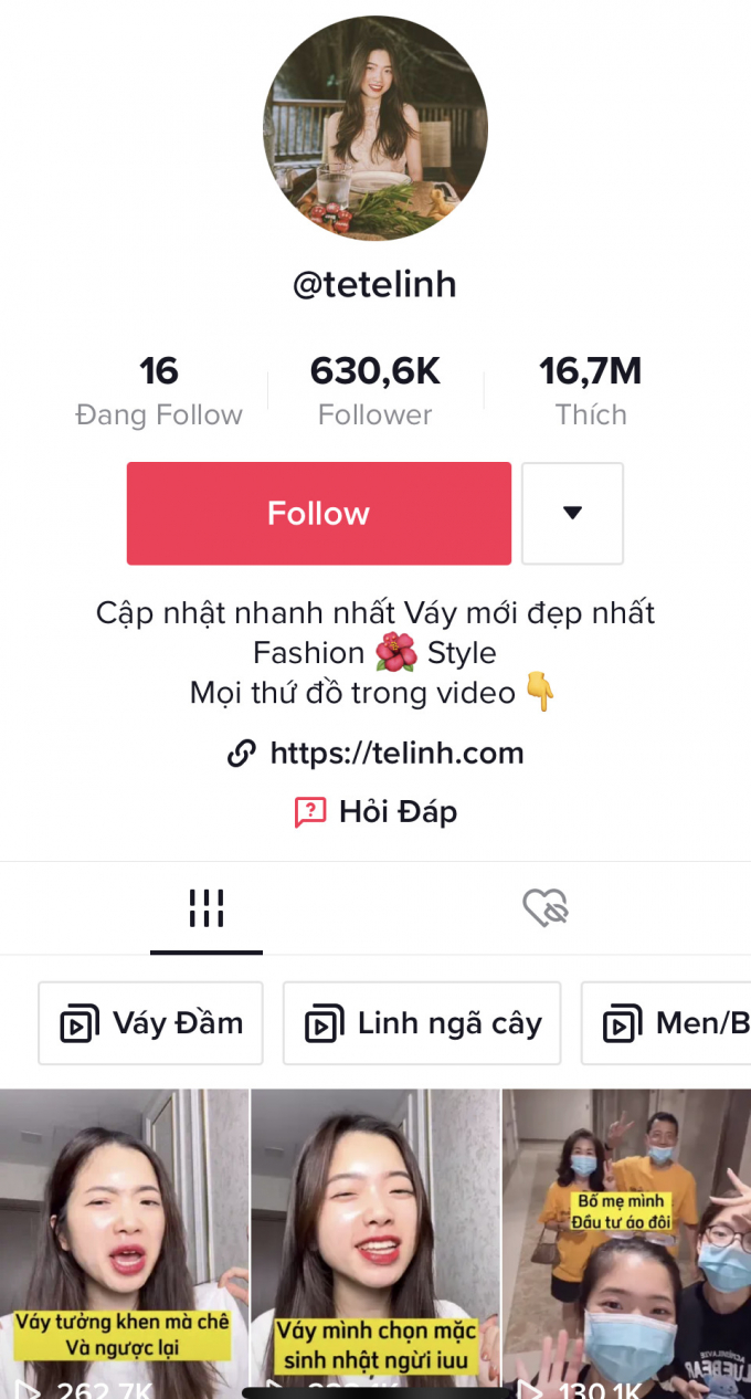 Là một trong những người dùng TikTok đời đầu về lĩnh vực thời trang, mang lại kiến thức cho người xem, Tê Linh đã quá quen thuộc với các bạn trẻ. Tại tài khoản của mình, không chỉ giống như những nhà sáng tạo khác hướng dẫn cách phối đồ, Linh còn chia sẻ thêm nhiều kiến thức chuyên sâu, từ trong nước đến quốc tế, như là nguồn gốc của các thương hiệu, hay những câu chuyện bên lề của các sản phẩm.