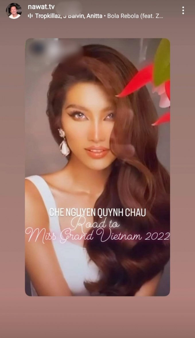 Đây không phải là lần đầu tiên Mr. Nawat "thả thính" Quỳnh Châu, ngay từ lúc cuộc thi Miss Grand Vietnam 2022 bắt đầu sơ khảo, hình ảnh của cô cũng đã được ông chia sẻ lại trên story.