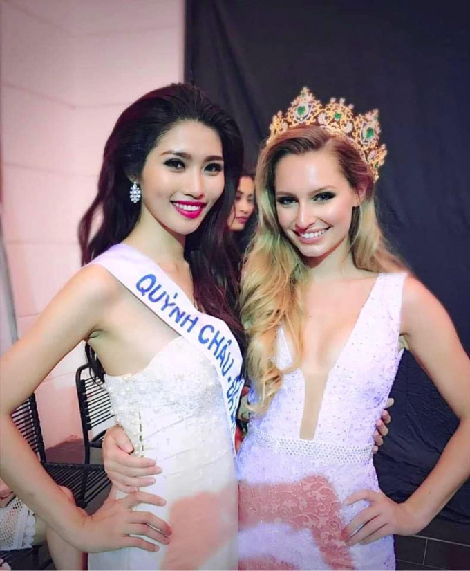 Quỳnh Châu từng có cơ duyên chụp ảnh cùng Miss Grand International 2015 (hiện đã tước vương miện)