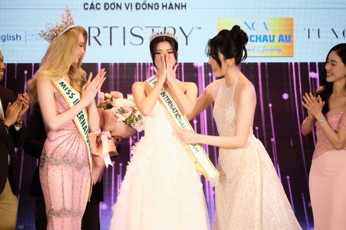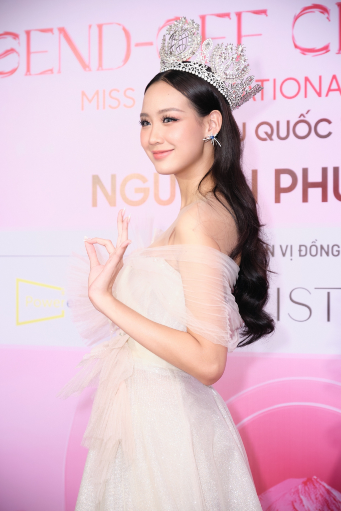 Hoa hậu Mai Phương là MC song ngữ trong buổi trao sash cho Phương Nhi. Nàng hậu sinh năm 1999 nhận được nhiều lời khen nhờ nhan sắc thăng hạng, một vẻ đẹp tri thức và nhân ái chuẩn tiêu chí Miss World.