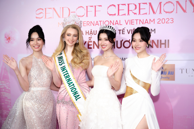 Trưa 23/05, các nàng hậu xuất thân từ Hoa hậu Việt Nam, Miss World Vietnam đã đến chung vui, chúc mừng Nguyễn Phương Nhi - mỹ nhân sẽ mang dải sash Vietnam tại Miss International 2023.