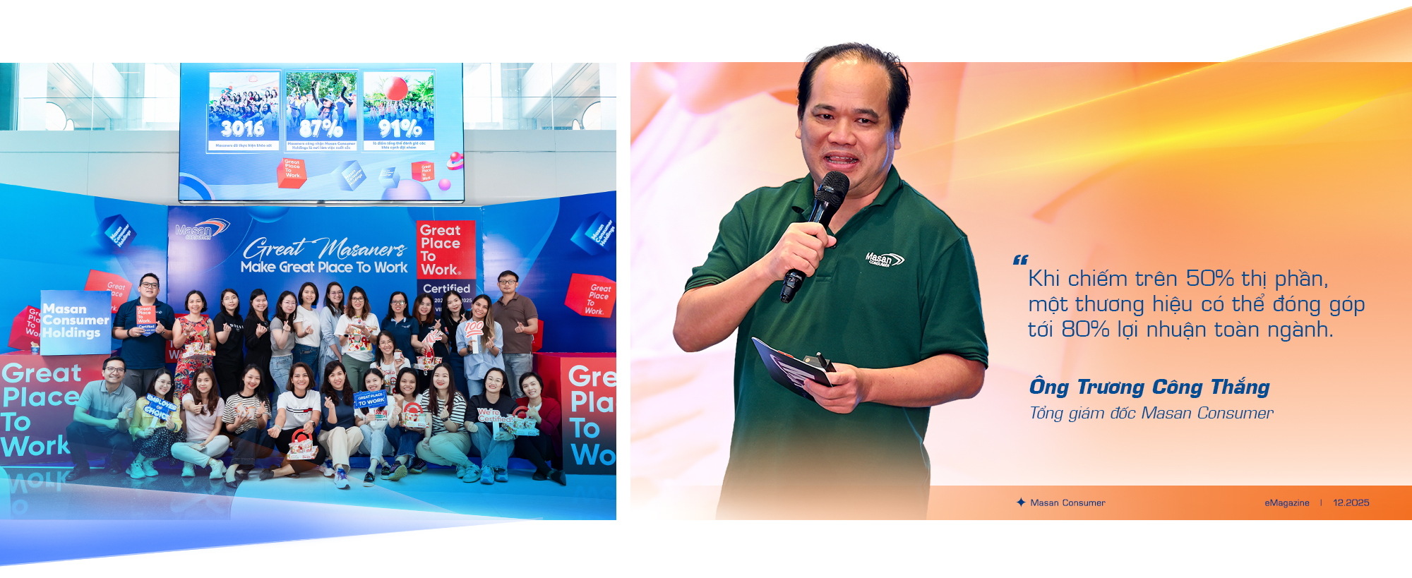 “Khi chiếm trên 50% thị phần, một thương hiệu có thể đóng góp tới 80% lợi nhuận toàn ngành” – Ông Thắng nhấn mạnh. Vì vậy, Masan Consumer tập trung cao độ vào việc củng cố vị thế dẫn đầu, tránh dàn trải nguồn lực, và chỉ hướng vào những ngành hàng có dư địa lớn cùng khả năng mở rộng mạnh mẽ.
