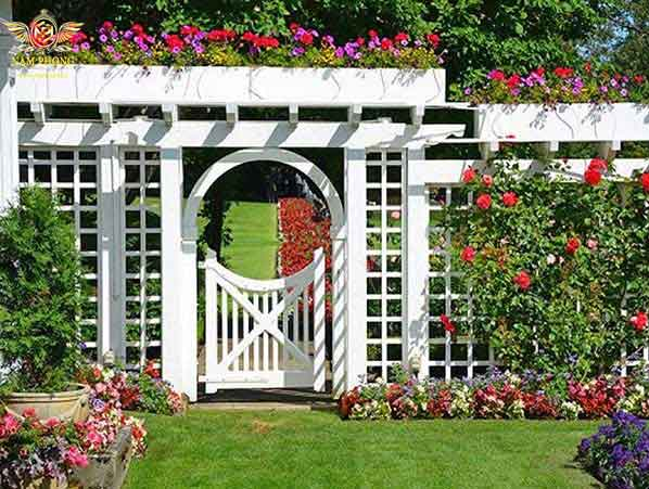- Cổng nhà vườn cần thiết kế để đảm bảo tính thẩm mỹ cao. Nên chọn những chiếc cổng có hoa văn và đường nét tinh xảo để phù hợp với vẻ đẹp cho không gian vườn nhà mình.