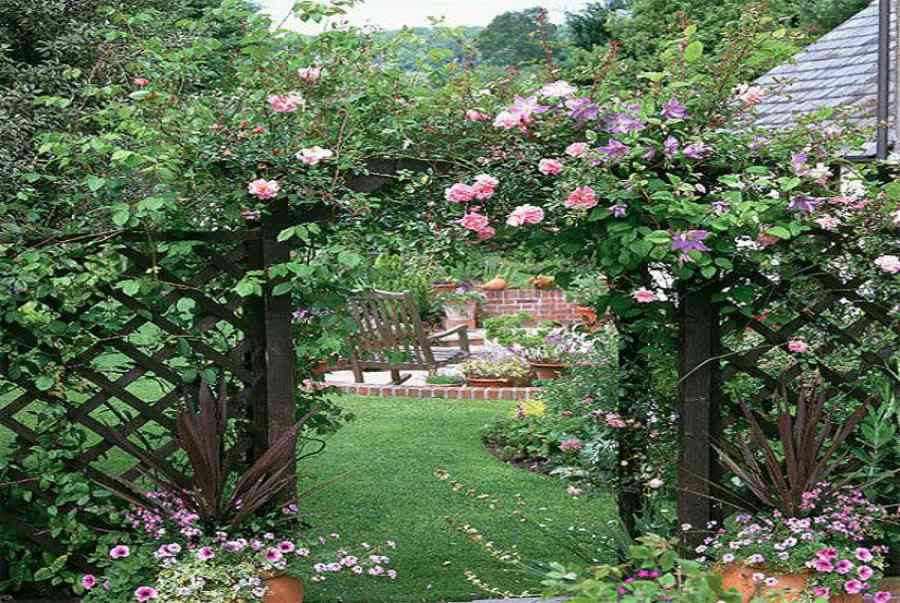 Cổng nhà vườn đẹp bằng cây: cây được trồng để tạo thành cổng sân vườn tạo được cảm giác tự nhiên làm cho sân vườn thêm lộng lẫy.