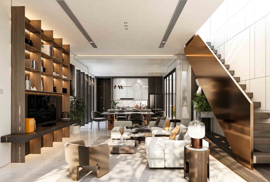 Gia chủ tuổi Kỷ Mão mệnh Thổ nên chọn nội thất phòng khách màu nâu gỗ, mang lại sự sang trọng, quý phái cho không gian sống của người mệnh Thổ. Khi kết hợp với sofa trắng xám, gam màu tương sinh vừa mang lại sự hài hòa cho không gian tổng thể, vừa mang lại sự may mắn cho gia chủ.