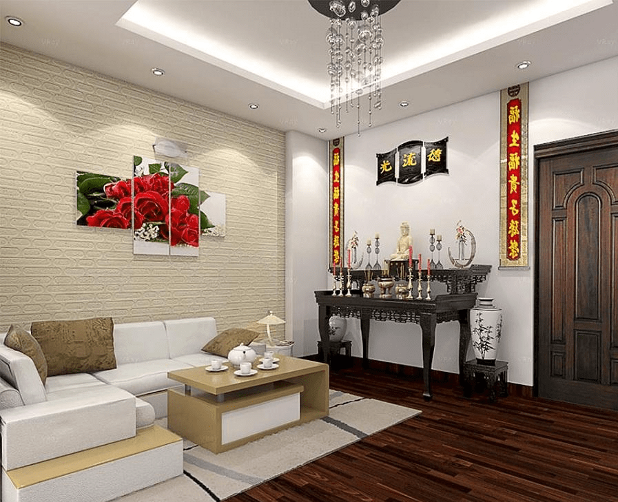 - Phòng thờ là không gian thanh tịnh nên cần chọn màu sắc nhẹ nhàng không nên chọn gam màu quá nóng.