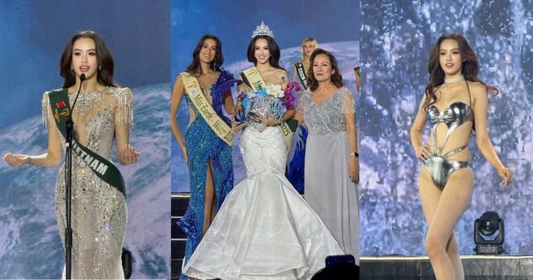 Tại chung kết Miss Earth 2025, Trịnh Mỹ Anh một lần nữa gây ấn tượng với sắc vóc quyến rũ, khỏe khoắn và lối trình diễn tự tin ở phần thi bikini. Bên cạnh đó, người đẹp còn nổi bật nhờ thần thái catwalk cuốn hút trong những bộ trang phục dạ hội lấp lánh và váy đuôi cá lộng lẫy tôn dáng của Đỗ Long. Cả hai thiết kế này giúp Trịnh Mỹ Anh chiếm trọn mọi ánh nhìn, đồng thời thể hiện sự tinh tế trong phong cách và bản lĩnh của mình tại đấu trường quốc tế.
