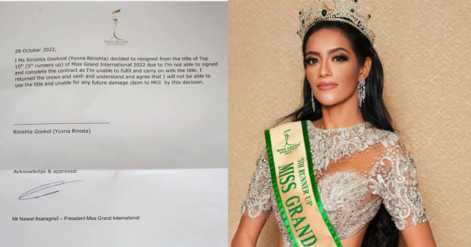 Đại diện Mauritius từ bỏ danh hiệu á hậu 5 sau khi bị yêu cầu ký hợp đồng làm việc tại Thái Lan 1 năm.