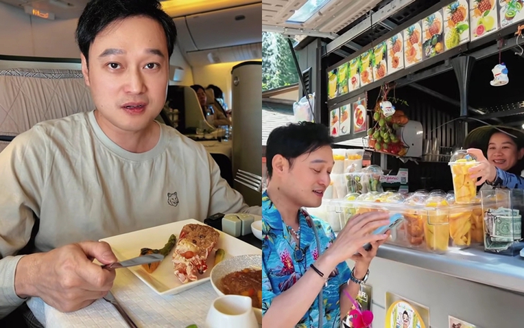 Anh nói: "Dù 2 giờ sáng nhưng tôi vẫn muốn ăn. Tôi phải khen đồ ăn hạng thương gia ở đây vì phục vụ liên tục, đa dạng món, nhiều món châu Á, lại có thể chọn đồ ăn trước khi bay, wifi mạnh lướt phà phà".