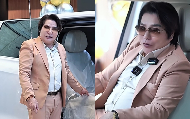 Nam nghệ sĩ ăn mặc sang trọng, đeo đồng hồ đắt tiền tới nhận xe. Anh nói: "Tôi mua xe là cái duyên. Trước giờ tôi có rất nhiều ô tô nhưng cảm giác ngồi vào chiếc ô tô này rất thoải mái, dễ chịu.