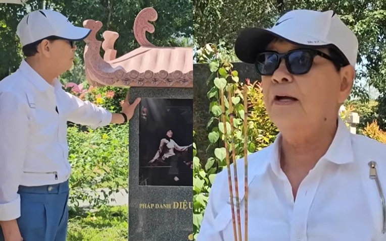 Ngay sau khi xuất viện, nam nghệ sĩ đã tới viếng mộ NSND Thanh Kim Huệ để chúc mừng sinh nhật người vợ quá cố.