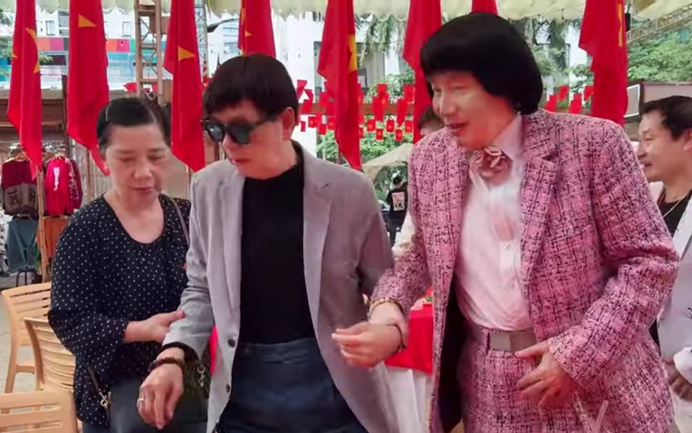 Tại lễ cúng Tổ nghiệp, NSND Thanh Điền phải đeo kính râm nhưng trông vẫn khá khỏe mạnh, hoạt bát. Ông đi chào hỏi các đồng nghiệp như NSND Kim Cương, NSND Minh Vương…